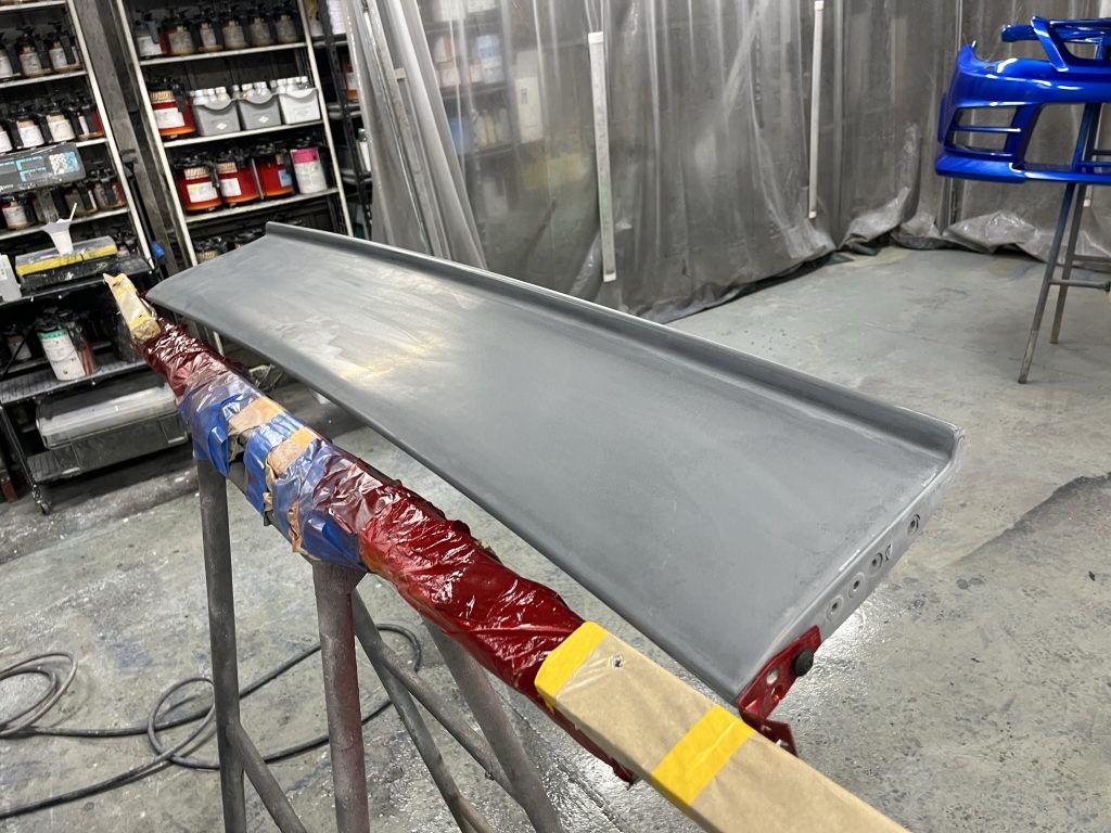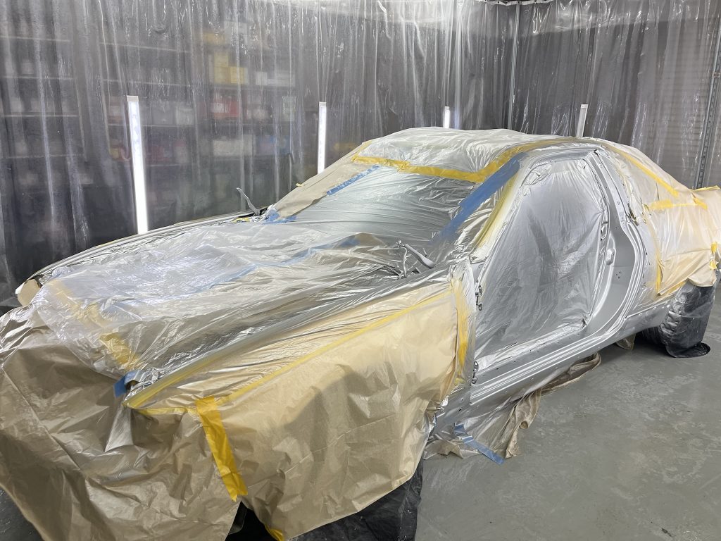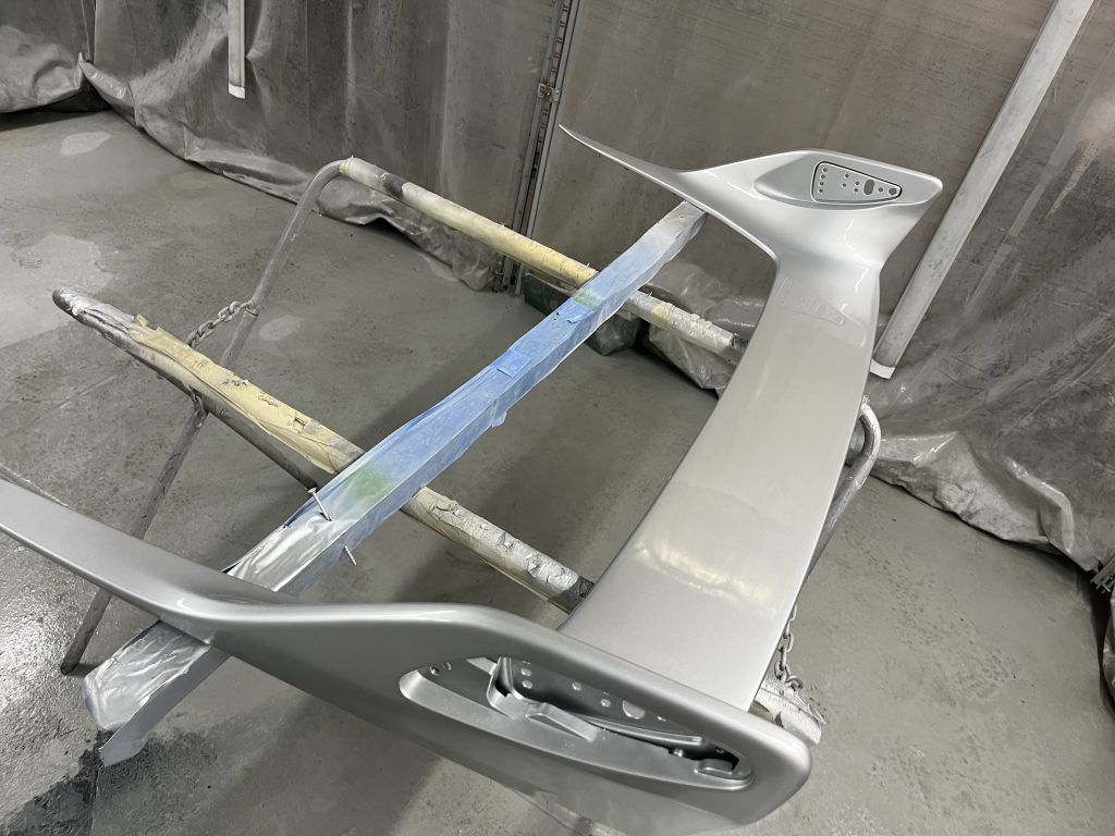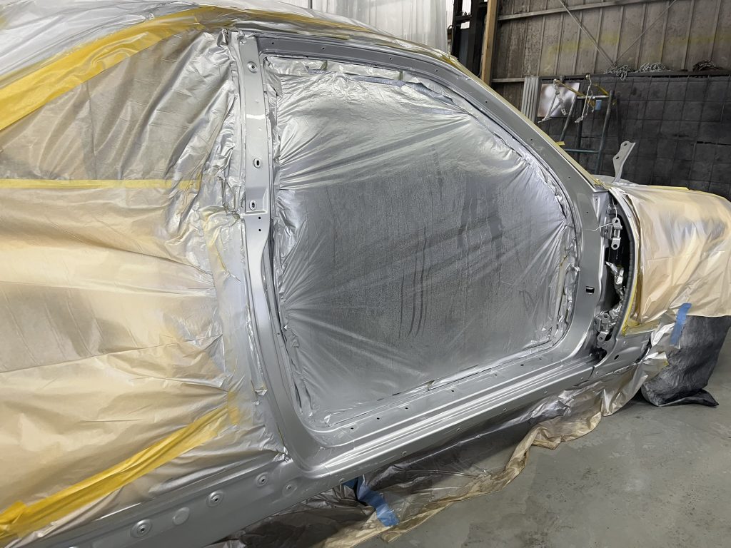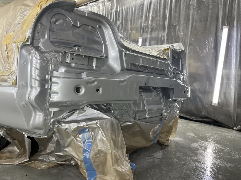 - オーナー様と打ち合わせて調色したシルバーで車体全体を塗装する。