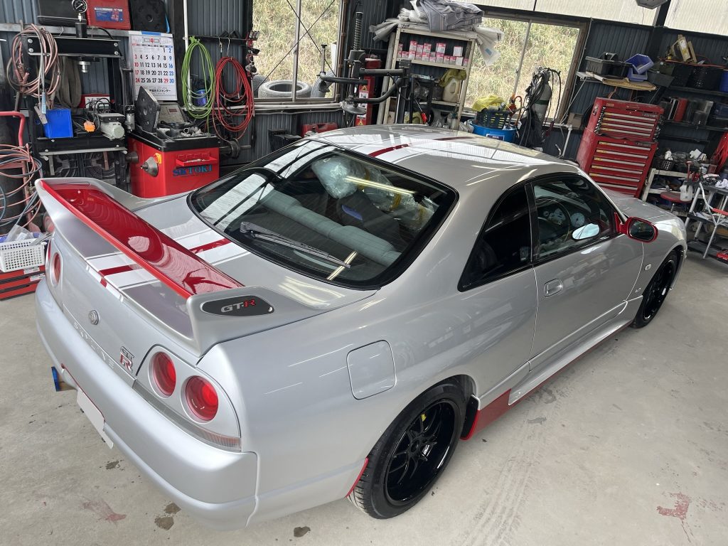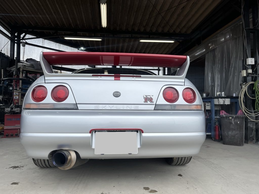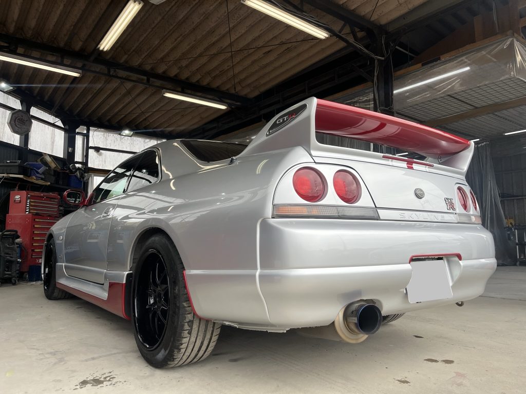 今回のご依頼は、日産スカイラインGT-R(BNR33)のオールペイント。オーナー様のご要望は「フェラーリ『488ピスタ』仕様にしてほしい」とのことでした。